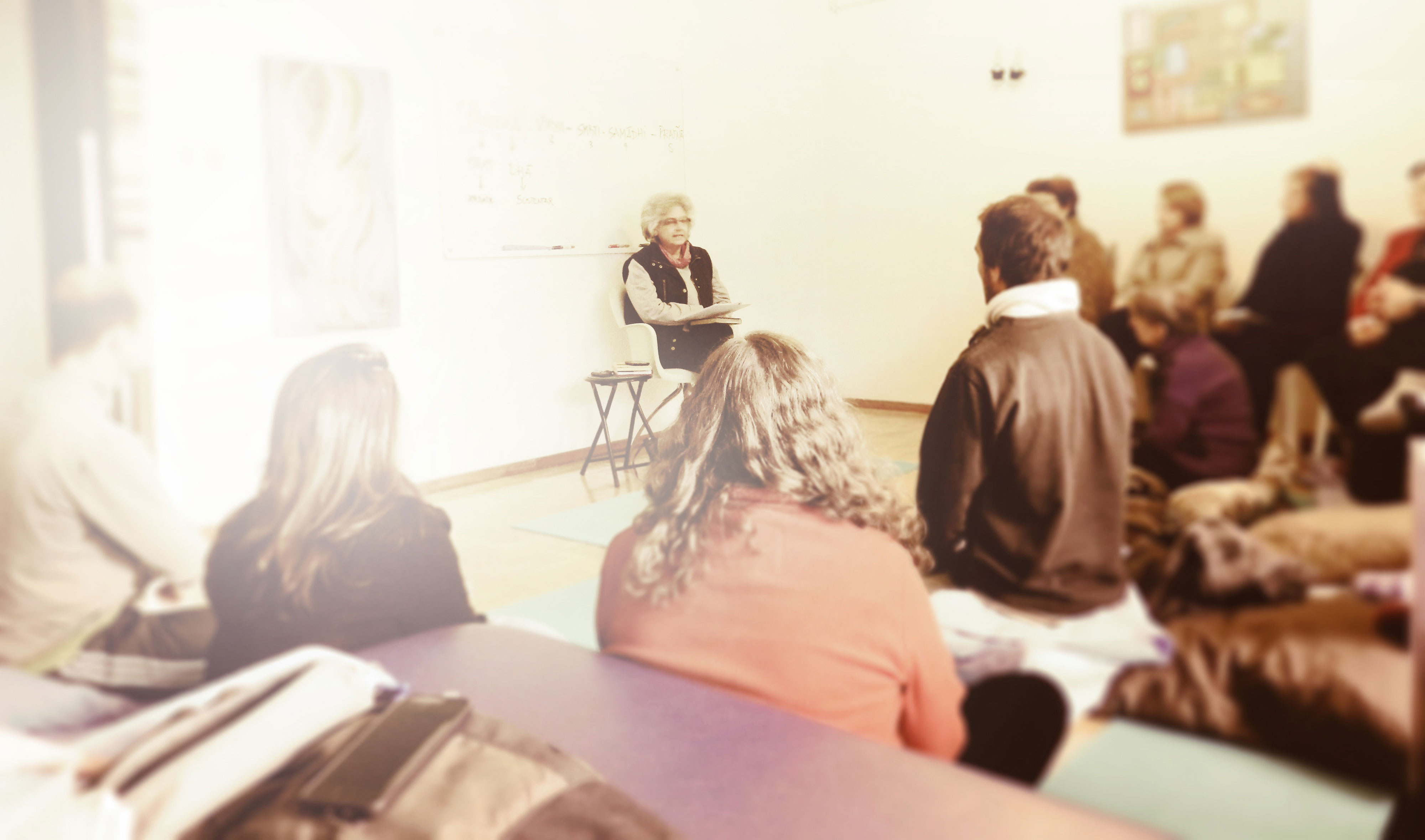 Aulas de Hatha Yoga e Raja Yoga, práticas e teóricas, alicerçadas principalmente no Yoga Sutra de Patãjali de acordo com a linhagem de Sri Krishnamacharya.